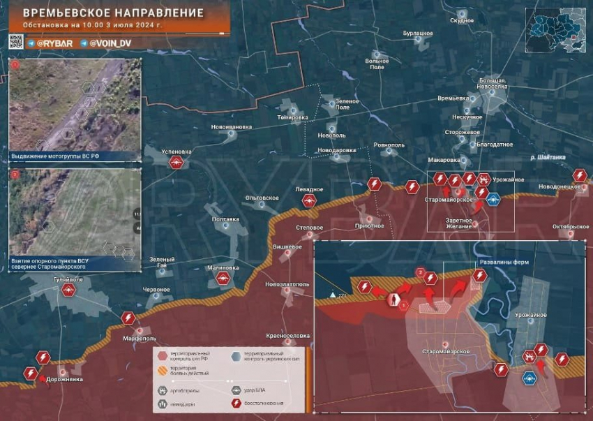 Новая карта боевых действий на Украине в зоне СВО по состоянию на 04.07.2024