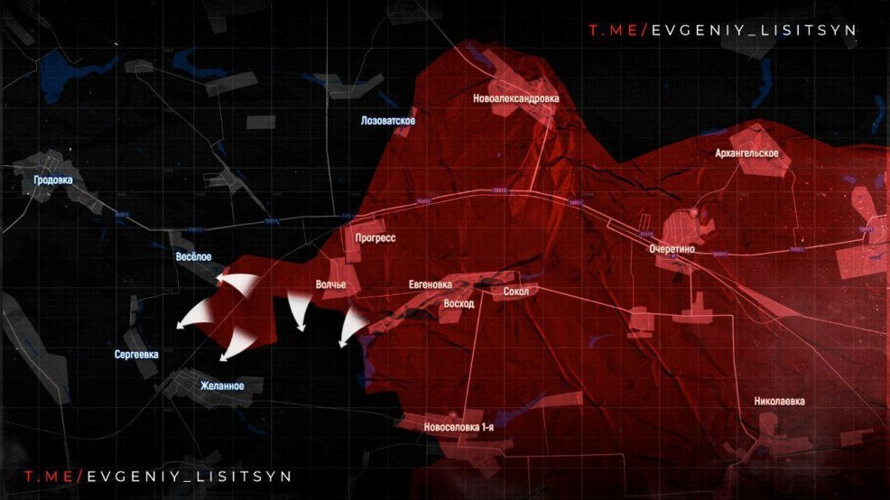На Покровском направлении российская армия вошла на территорию села Тимофеевка. Благодаря этому ВС РФ приближаются к трассе Константиновка-Красноармейск (Покровск). Причем делают это в обход Воздвиженки, где ВСУ пока упорно сопротивляются.