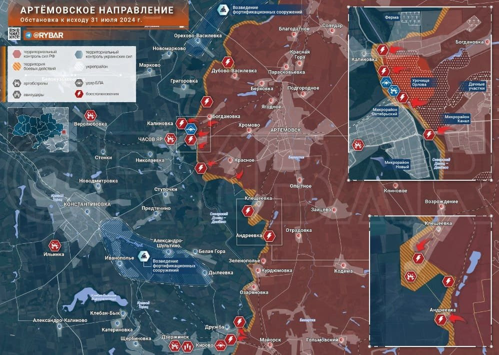 На Артемовском направлении российские войска взяли под полный контроль урочище Орлова и закрепились на окраине микрорайона Октябрьский.