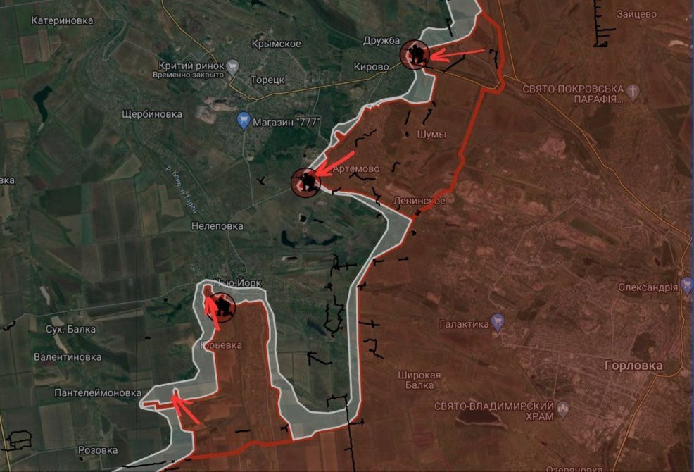 На Торецком направлении российская армия продвинулась на южной окраине Артемово (Железное). Также приходит информация о том, что наши бойцы заняли территорию хлебозавода в западной части Нью Йорка (Новгородское). Об этом пишет в своем Telegram-канале военкор Евгений Лисицын.