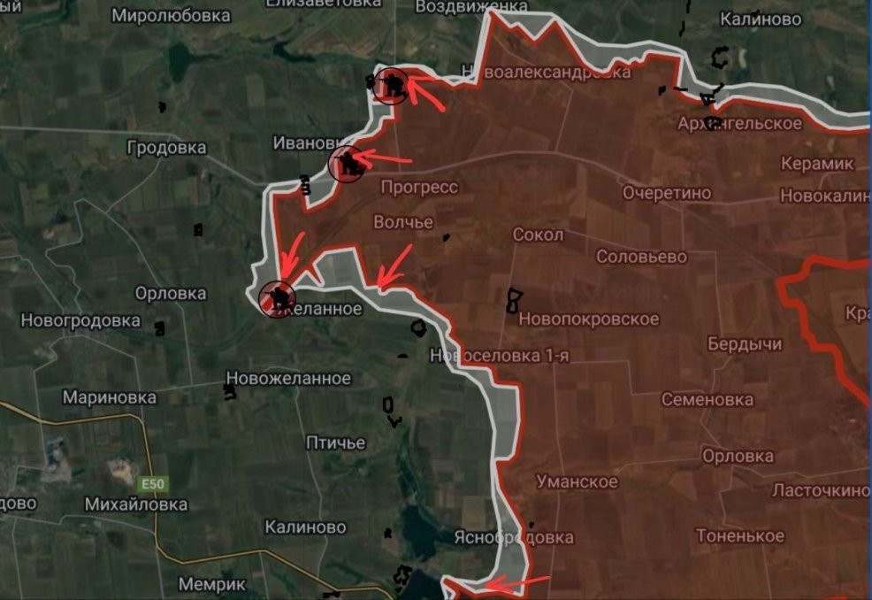 На Покровском направлении у нашей армии сохраняется высокий темп продвижения, а противник продолжает отступать. У Желанного вчера пал крупный опорник ВСУ и российской армии удалось зайти на территорию поселка. Там наши парни заняли местную ЖД станцию. Также ВС РФ удалось продвинуться к Лисичному и Свиридоновке. Учитывая высокий темп продвижения, в ближайшее время российская армия может не только перерезать стратегическую трассу Покровск - Константиновка, но и выйти к выйти к Покровску и Мирнограду.
