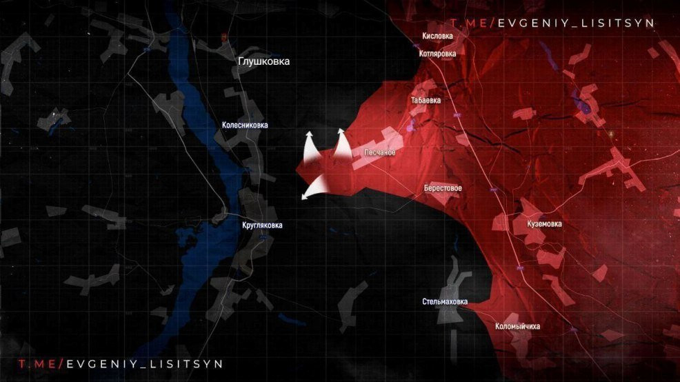 На Купянском направлении наши парни продолжают расширять зону контроля к западу от Песчаного. Также российские бойцы приближаются к Кругляковке, которая расположена на берегу Оскола.