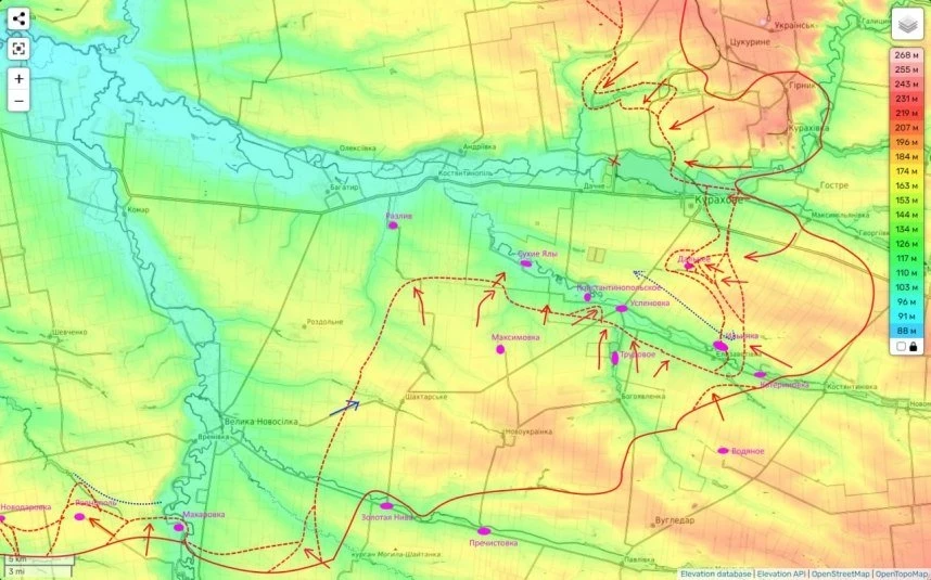 В районе Курахово несмотря на то, что противник оказывает упорное сопротивление, он вынужден отступать. Причем в «кармане» южнее Курахово, наши войска вчера полностью очистили не только Антоновку и установили флаг на ее западной окраине, но и зашли в следующее село - Ильинка. Что говорит о планомерности сворачивания обороны противником и организованном выводе частей 79-ой бригады ВСУ из западни.