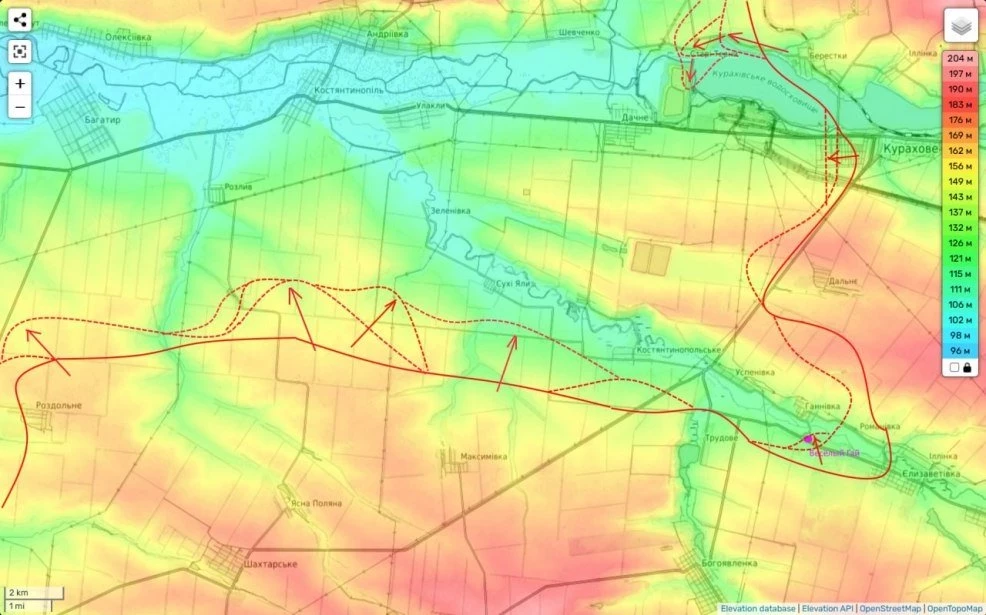 Таким образом уже очевидно наше желание выйти на линию Шевченко-Даченское Сухой Яр (здесь также идут наши атаки), чтобы таким образом выйти на южные подступы к городу и подготовить удобный плацдарм для его охвата с запада. Для этого идут в т.ч. бои за Новопустынку.