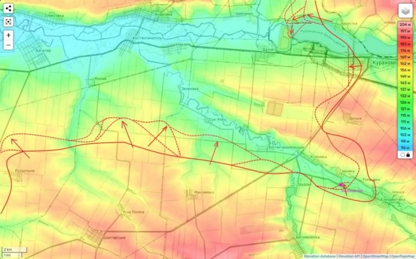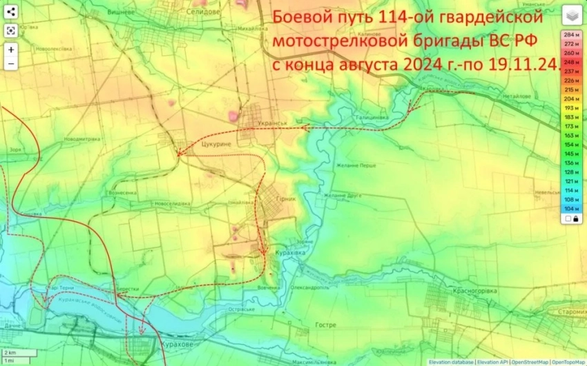 "А ещё Старых Тернов (откуда можно зайти Курахово в тыл и обрушить сразу все). Именно здесь наступает 114-я бригада (боевой путь которой только за осень представлен на карте 2). И именно она и здесь, похоже, сломала хребет вражеской обороне.