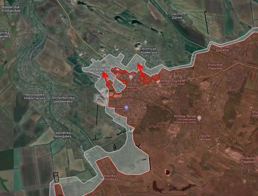 На Покровское направление. Российские войска прорвали оборону ВСУ и продвинулись южнее Барановки на участке шириной до 1.65 км на глубину до 550 м., в районе Воздвиженки расширили контроль территории и продвинулись на глубину до 650 м. в направлении автодороги Покровск-Константиновка.
