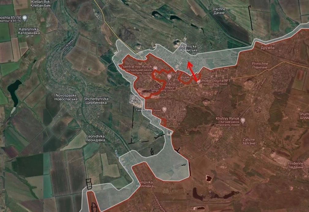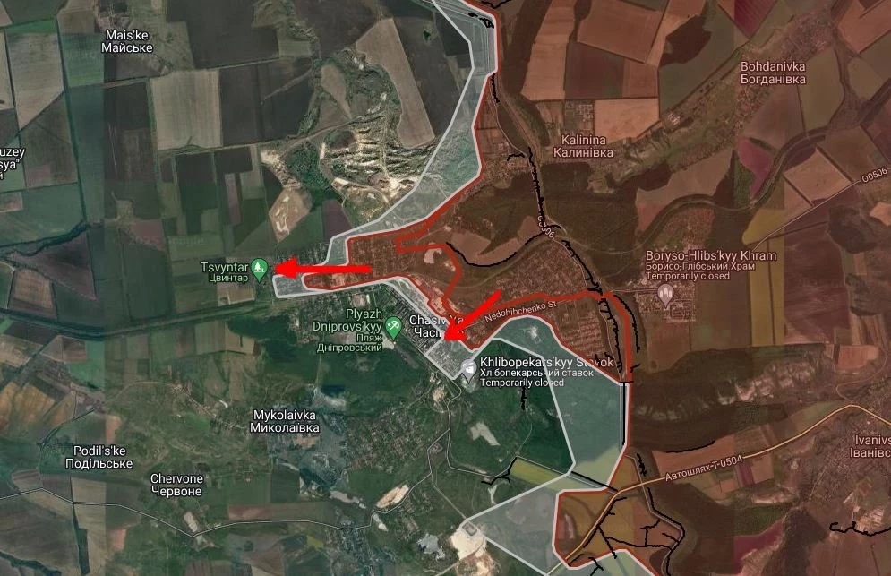 Российские войска продвинулись в направлении Серебрянное, юго-западнее Славянки на глубину до 1 км и западнее Петропавловки.