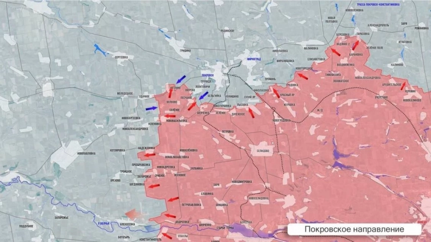 На Покровском направлении ВС РФ закрепляются на юго-восточной окраине Богдановки. В районе Надеждинки наши продвинулись на 3,5 км и с юга охватили Котляровку, что у самой границы ДНР и Днепропетровской области. ВСУ спешно тянет резервы в район Новопавловки. На охвате Покровска без значимых изменений. ВС РФ ведут тяжёлую боевую работу, идут артиллерийские дуэли. Нашим удалось закрепиться в северной части Лысовки, восточнее не стихают ожесточённые бои за Тарасовку.