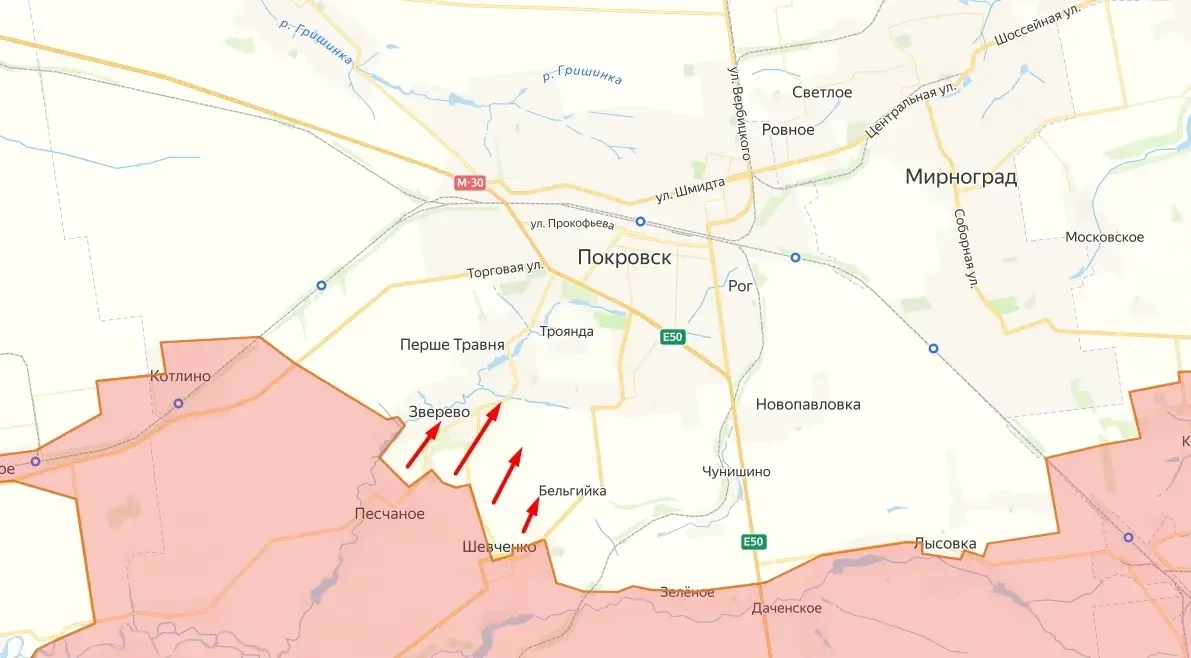 К востоку от Покровска ожесточённые бои идут в районах Елизаветовки, Тарасовки и Старой Николаевки. При этом, по данным вражеских мониторинговых ресурсов, особенно тяжёлая ситуация для ВСУ сложилась под Тарасовкой, где российские войска почти полностью взяли под контроль Водяное Второе и Зелёное Поле.
