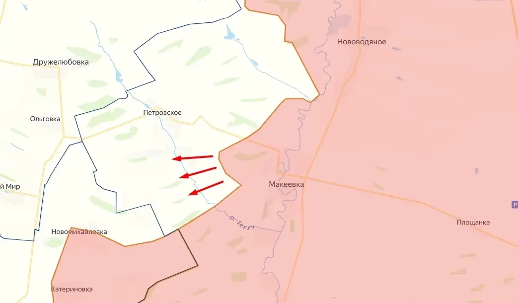 Как сообщил военный эксперт Андрей Марочко, наши штурмовые подразделения выбили противника из удерживаемых им позиций западнее населённого пункта Макеевка. Кроме того, российским бойцам удалось форсировать реку Текуч и закрепиться сразу в нескольких местах на её западном берегу, тем самым создав плацдарм для дальнейшего продвижения.