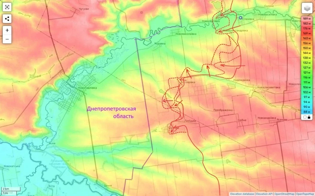 Котляровка - вчера её дочистили. Но этим наши здесь успехи не ограничились. Также мы сумели заметно продвинуться южнее села и заняли несколько посадок по направлению к Днепропетровщине. До которой нам по состоянию на утро оставалось пройти всего два поля.