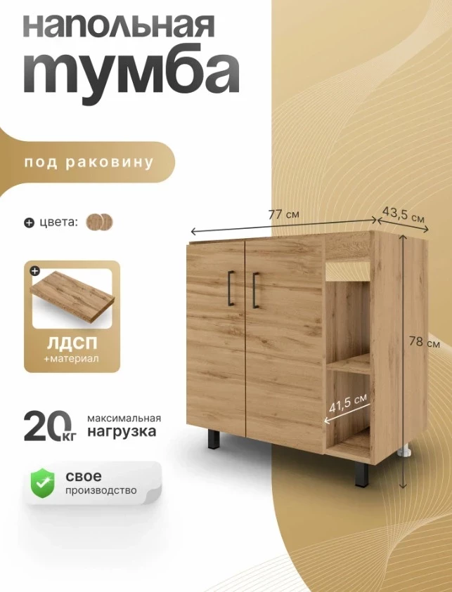 Тумба под раковину в ванную, СпадарДрэва 77х43,5х78 см / тумбочка для ванной напольная, ЛДСП