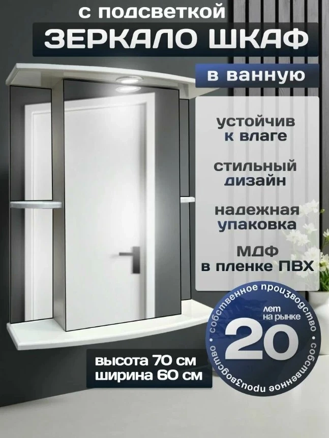 Зеркало-шкаф Мадрид с подсветкой, навесной, правый, 60х22х70