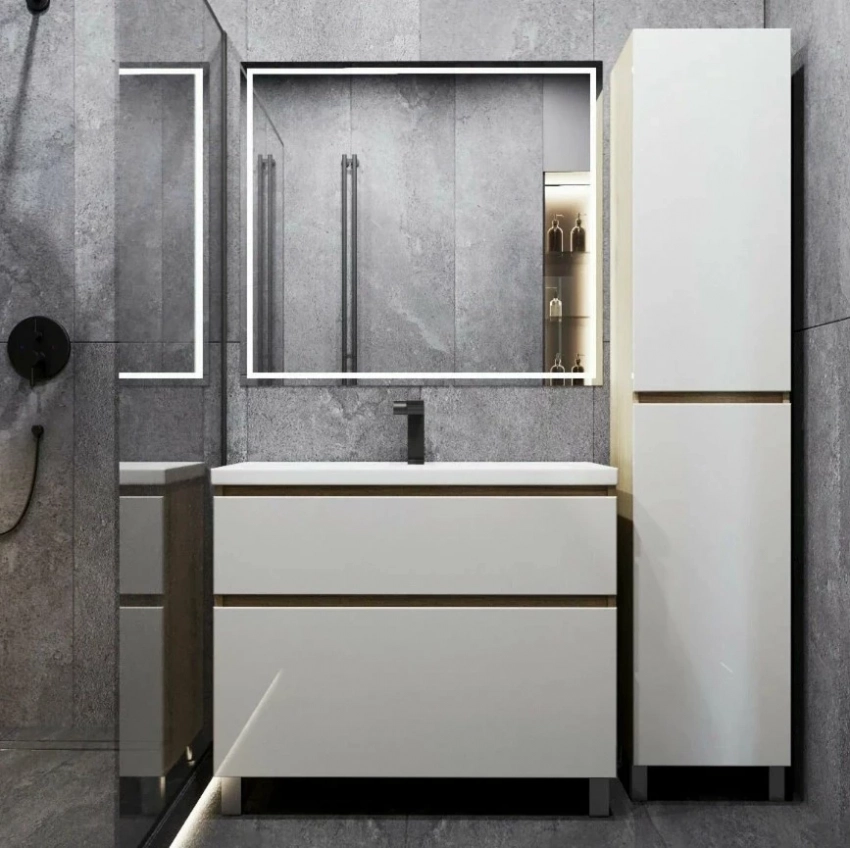 Тумба под раковину Lina New 105Н от 1Marka — отличный пример того, как выбрать качественную мебель для ванной комнаты, если вы цените комфорт, эстетику и немецкую надёжность. Фасады из МДФ EGGER с влагостойкой ПВХ-плёнкой устойчивы к влаге и при этом выглядят дорого. Немецкая фурнитура Hettich обеспечивает плавное и тихое закрытие, а корзина для белья и глубокие секции с доводчиками делают хранение удобным. Функциональные ручки могут использоваться как полотенцедержатели, что добавляет ещё один плюс к универсальности этой тумбы.