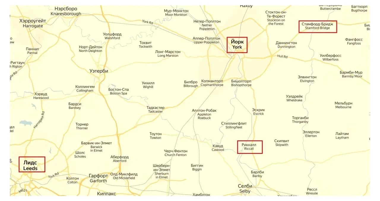 Остаётся загадкой, почему город сразу не был захвачен и прибывшее войско не расположилось в нём, почему нужно было получать заложников от Йоркшира в Стамфорд-Бридже на следующий день, а не в воскресенье? Да и зачем все эти вопросы решать в Стамфорд-Бридже, который находится в 20 км от Риккалла, тогда как Йорк в 14 км? Даже если принять версию о том, что Стамфорд-Бридж стоит на перекрёстке дорог и эта территория ещё была не ограблена. Территория южнее и западнее Йорка, так как корабли заходили по устью Хамбер в реку Узе, была «съедена» и норвежцами, и ранее Тости, с его 60 кораблями, именно здесь он взял г. Лидс, от которого и до Йорка, да и до Риккалла порядка 40 км. Можно предположить, что в эту сторону уже всё было разграблено, и норвежцы предполагали двигаться, чтобы «покушать» через мост Стамфорд-Бриджа, восточнее реки Дервент.