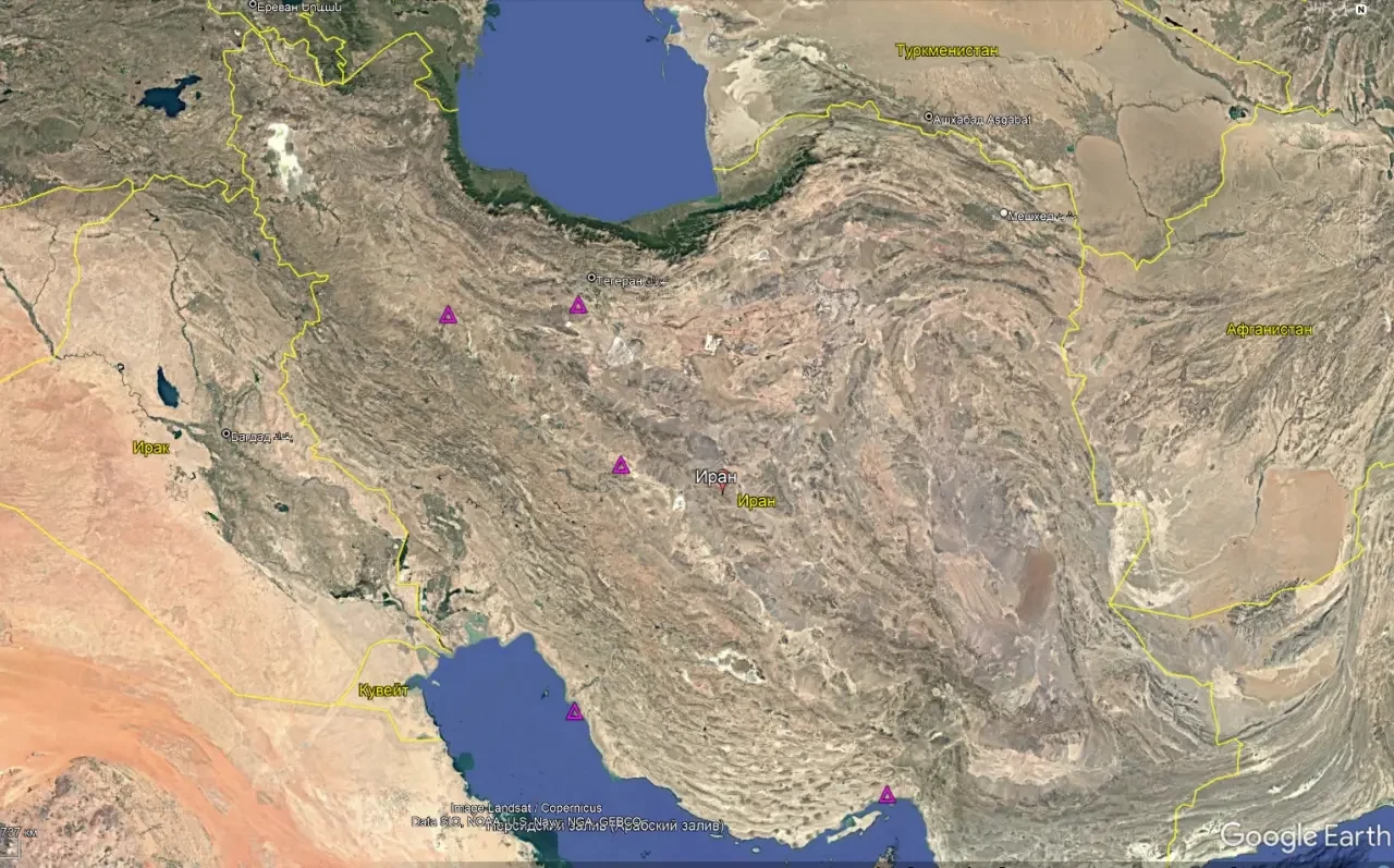 Схема размещения позиций ЗРК С-200ВЭ в Иране