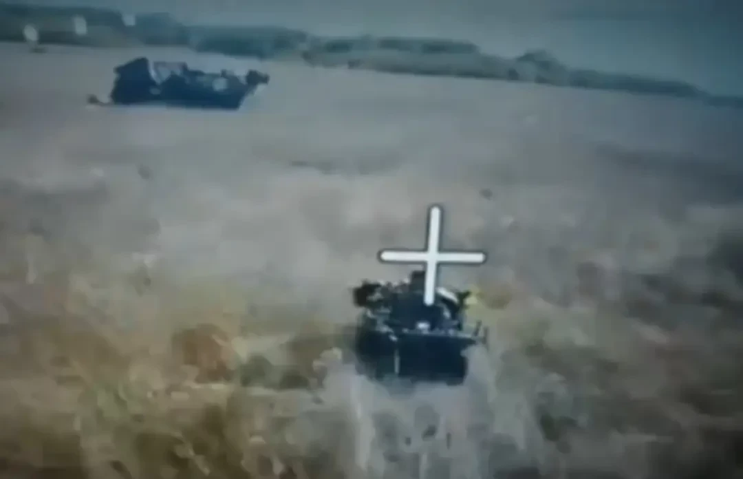 На кадрах видно, как колонна из 5-6 квадроциклов, на некоторых из которых было по несколько человек, движется по грунтовой дороге. Заметив приближающиеся дроны, некоторые вэсэушники запаниковали. Можно увидеть, как один квадроцикл свернул с дороги и попытался уйти полем, но это не помогло ему улизнуть.