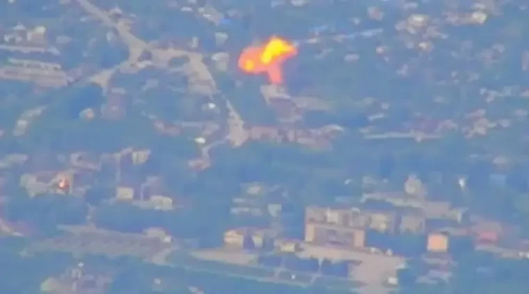 На кадрах видно здание, по которому прилетает боеприпас, вследствие чего происходит мощнейший взрыв, едва ли оставляющий шансы выжить тем, кто оказался в зоне поражения.