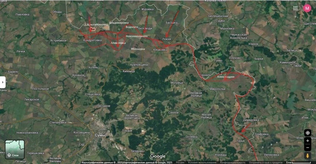 За прошедшие двое суток на Сумском направлении российские войска взяли под полный контроль еще два села - Алексеевку и Кондратьевку. Таким образом до стратегически важного пгт Хотень нам осталось пройти около 4 км, а до областного центра Сум расстояние сократилось до менее 18 км.
