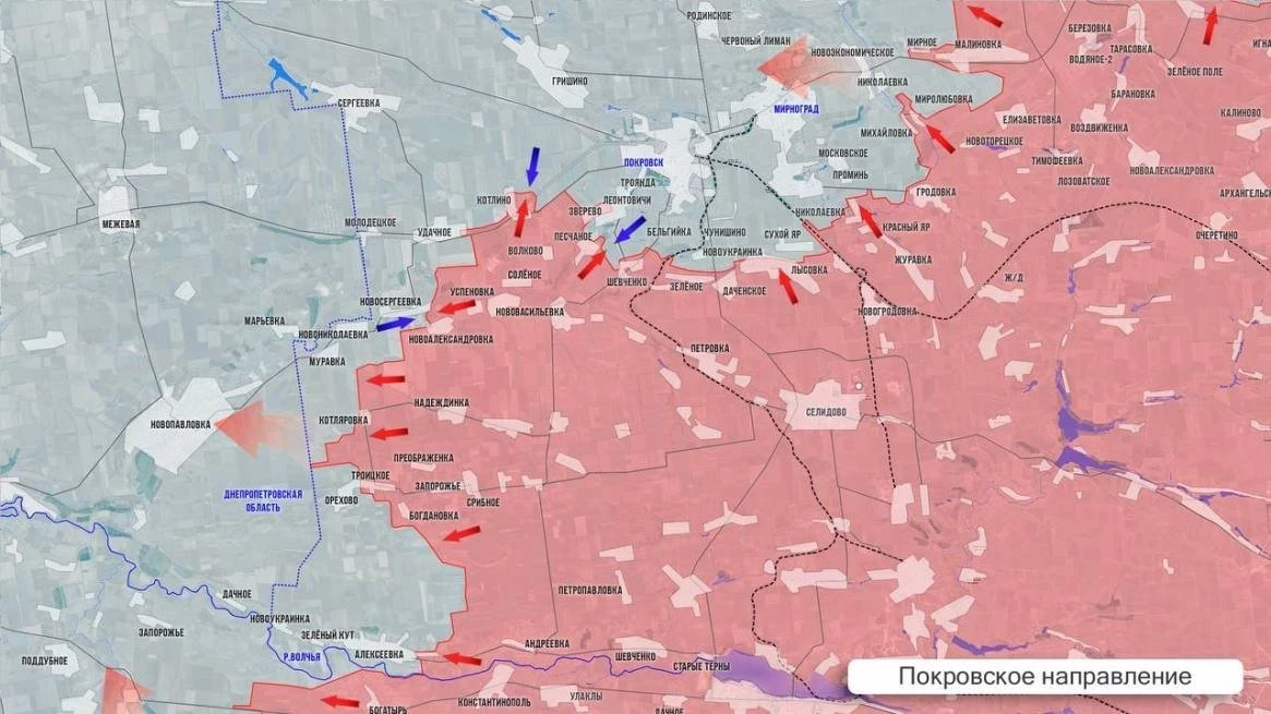 С Покровского направления особых новостей нет: продолжаются бои вдоль границы с Днепропетровской области, тяжёлые боестолкновения за контроль над Новониколаевкой и Новосергеевкой.