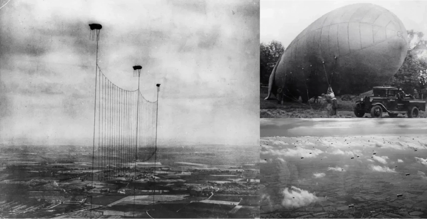 Примеры применения заградительных аэростатов и масштабы применения во времена Второй мировой войны (ВМВ)