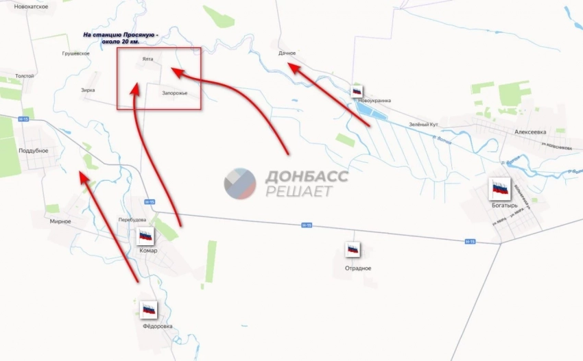 От Комара российские подразделения наступают в сторону Перебудовой с выходом на Мирное.