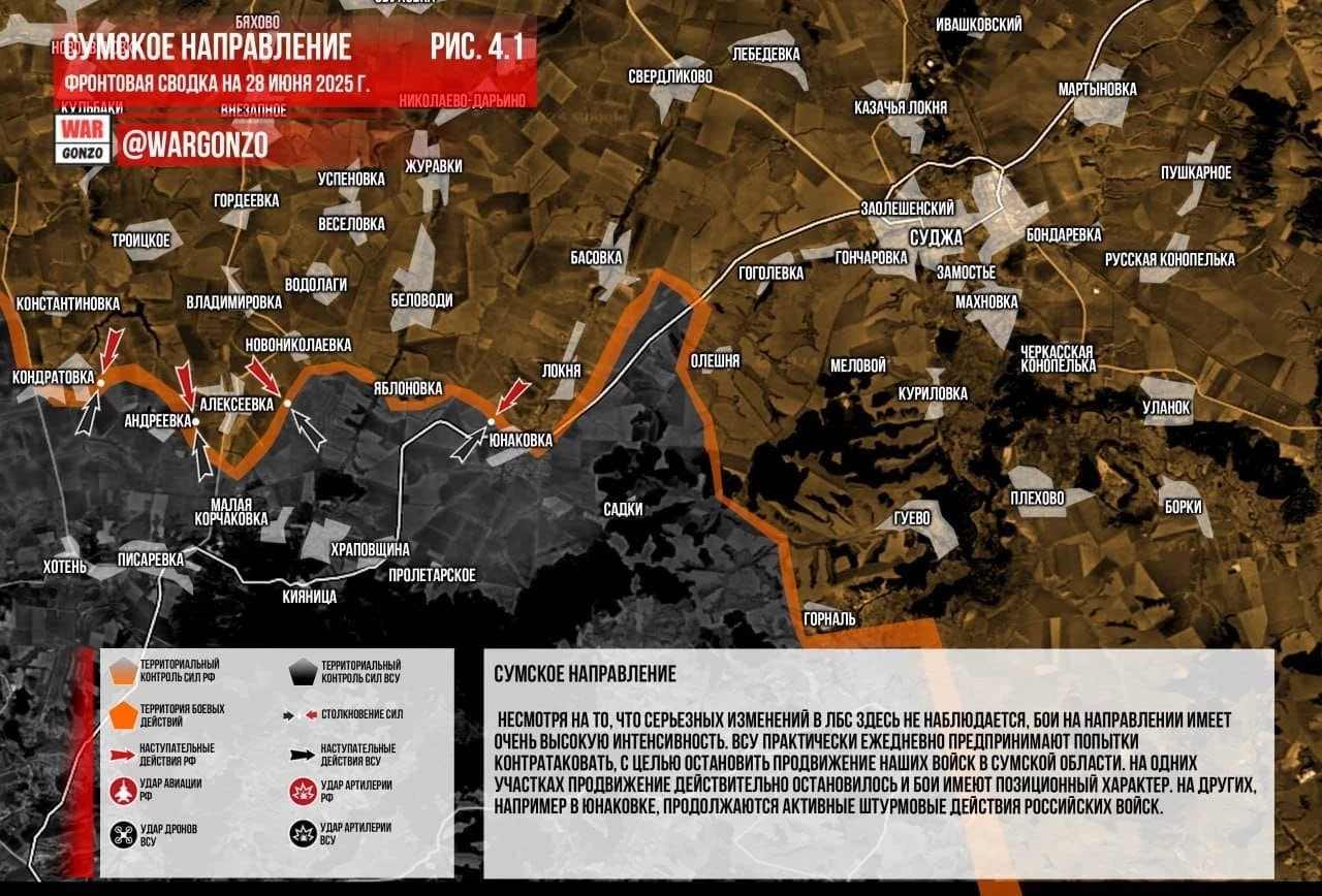 Карта боевых действий на Украине. Обстановка в зоне СВО на 28.06.2025