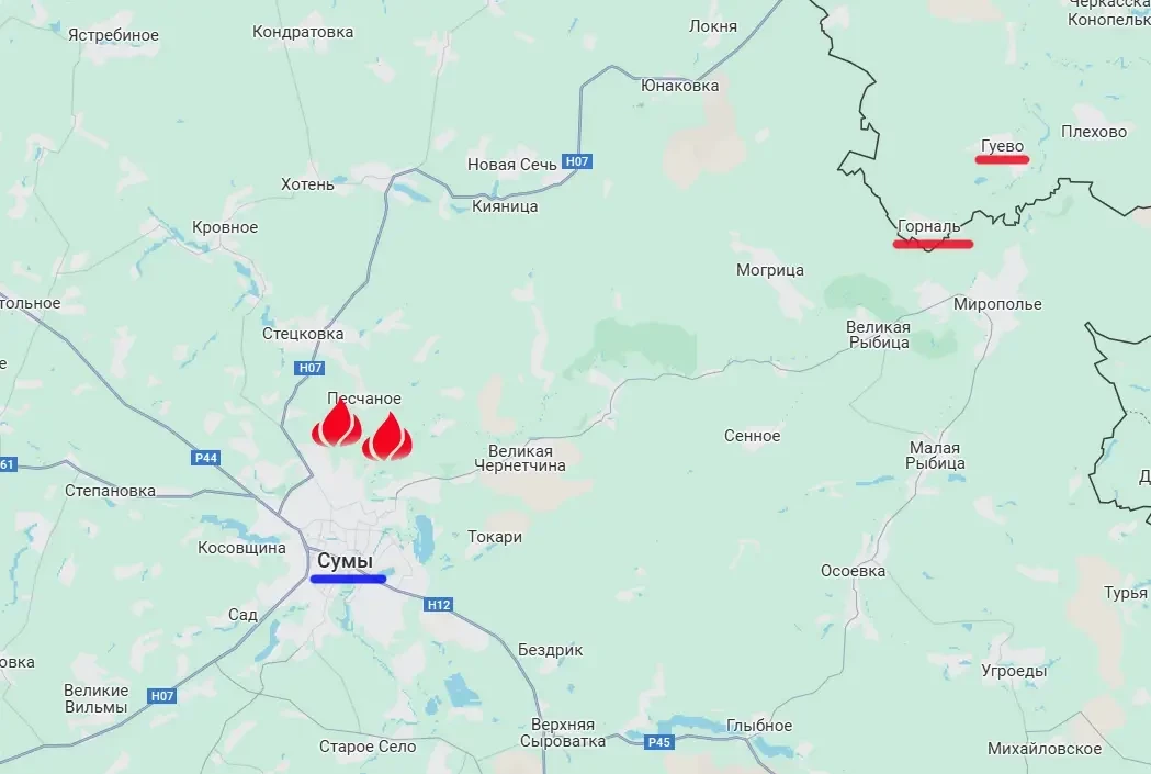 Напомним, что это сёла в Суджанском районе Курской области. В своё время они были оккупированы ВСУ. После успешной освободительной операции Гуево и Горналь перешли под контроль армии России, а после этого наши войска заняли достаточно обширные территории на севере Сумской области, подойдя к Сумам на расстояние около 16-17 км. Сейчас ВСУ прикладывают усилия, чтобы отодвинуть наши передовые подразделения от областного центра, однако артиллерия выбивает силы противника в районе Сум и одновременно значительно осложняет логистику противника на этом направлении.