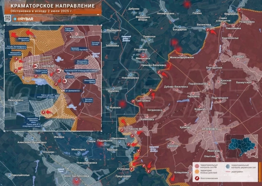 В Часов Яре инициатива на стороне ВС РФ. По оперативным данным, мкр Шевченко - за нашими бойцами, которые выходят к Николаевке. Через неё проходит значительная часть снабжения ВСУ.