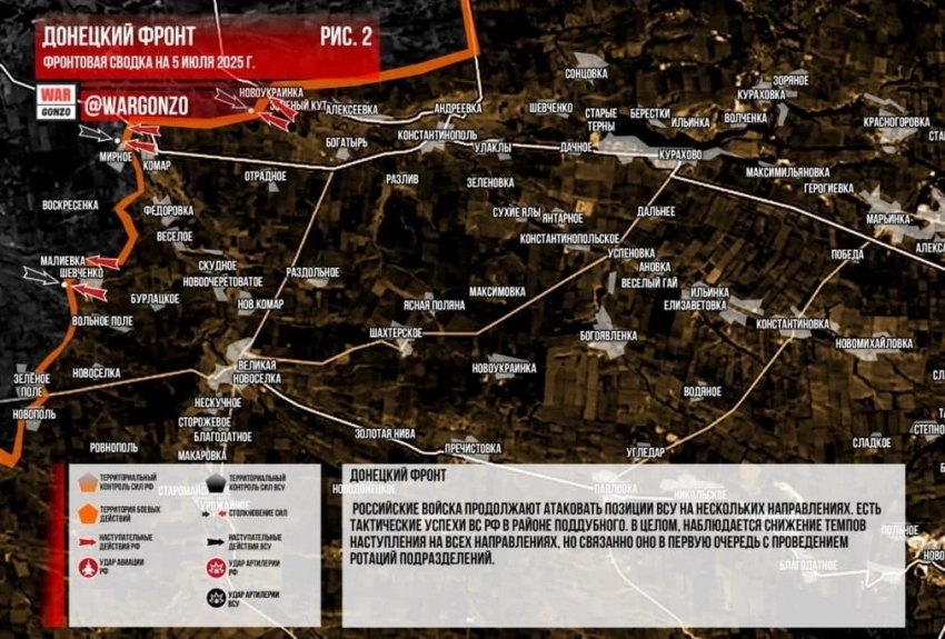 Карта боевых действий на Украине. Ситуация в зоне СВО на 05.07.2025