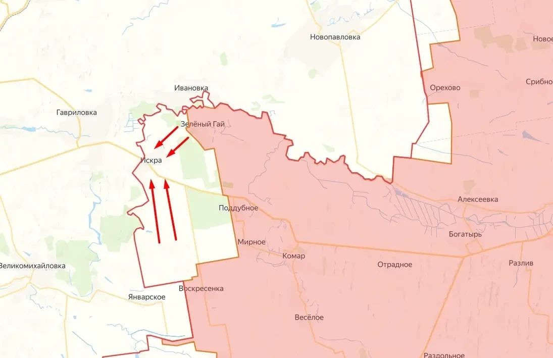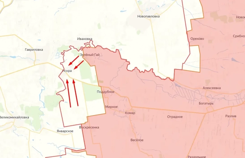 Российские околовоенные ТГ-каналы сообщают о штурмовых действиях наших военных в очередном населённом пункте ДНР, расположенном на границе с Днепропетровской областью. Речь идёт о селе Александроград, находящемся южнее Искры.