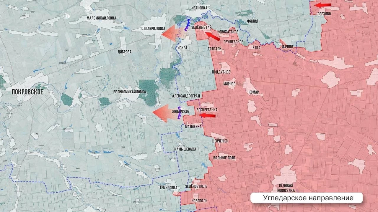 На Покровском фронте ситуация очень подвижна. На западном фланге ожесточённые бои в районе Котлино. В Леонтовичах ВС РФ стараются потеснить противника, чтобы выйти на ближайшие рубежи для штурма Покровска. Упорные бои в районе Новоукраинки. Восточнее, со стороны Николаевки ВС РФ продвигаются в сторону Сухого Яра. Со стороны Гродовки ВС РФ приближаются к сёлам Проминь и Московское. Севернее Мирнограда бои идут в районе Красного Лимана, где штурмовики стараются выбить противника с территории шахты. Лётчики ФАБ-1500 уничтожили крупный ПВД ВСУ в Родинском. Выше по фронту наши войска теснят противника в районе Суворово, Никаноровки и Нового Шахово.