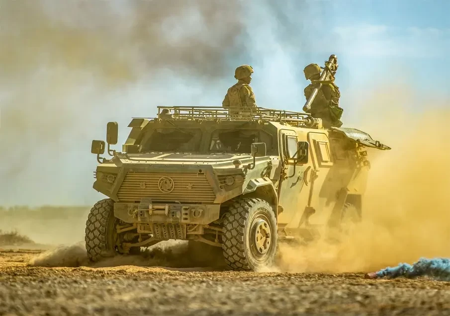 Для защиты от воздушных угроз техники на марше используется вариант с двумя расчётами ПЗРК. Первый – в головной части колонны, второй – в хвостовой. Огонь зенитными ракетами по воздушным целям ведётся в том числе в движении – когда бронеавтомобиль, перевозящий расчёт несколько сбавляет скорость, но при этом не останавливается.