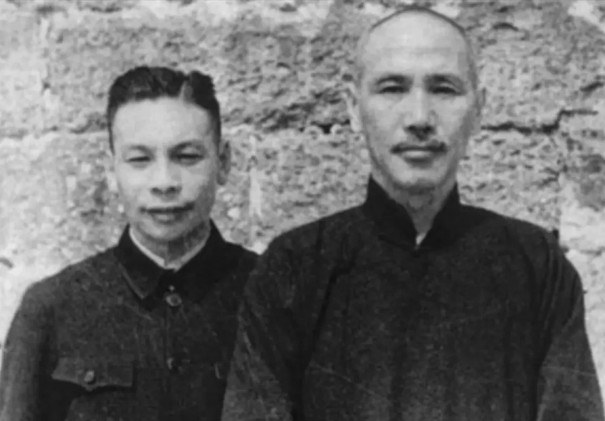 Вернувшийся в Китай Цзян Цзинго и его отец Чан Кайши, фотография 1937 г.