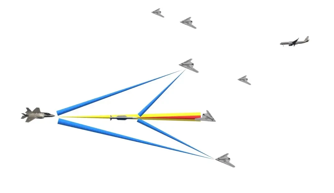 При этом машины, находящиеся в максимальной близости к атакуемому БПЛА, осуществляют постановку радиоэлектронных помех «со стороны». По открытым данным, именно такая тактика является наиболее эффективной для срыва захвата цели атакующими ракетами «воздух-воздух» или ЗУР противника, когда помехи ставятся не самим атакуемым самолётом, а другими машинами группы.
