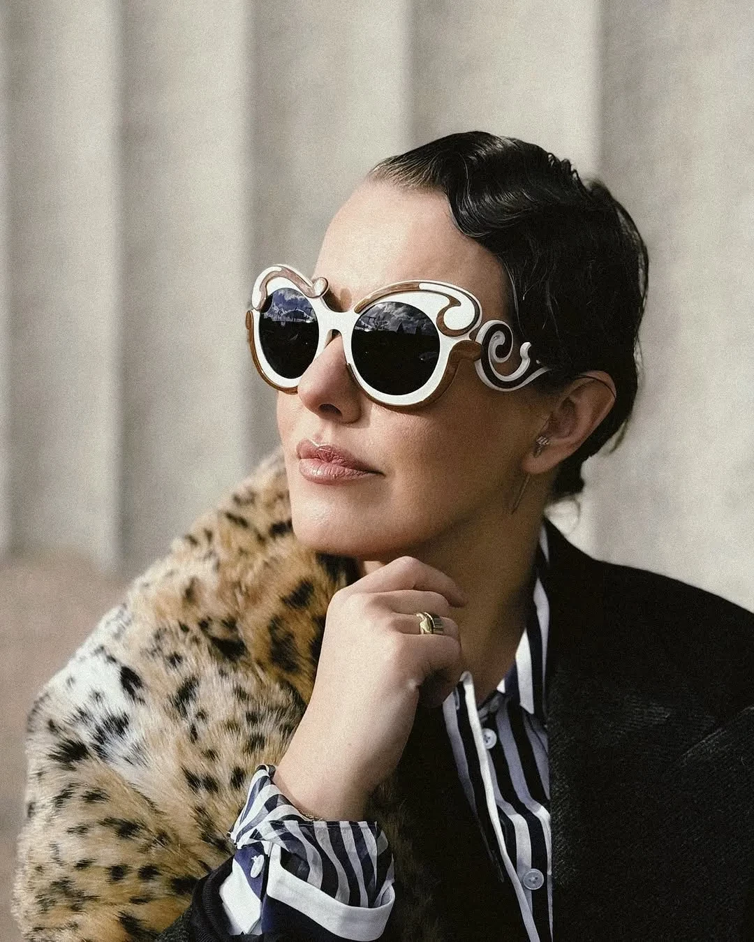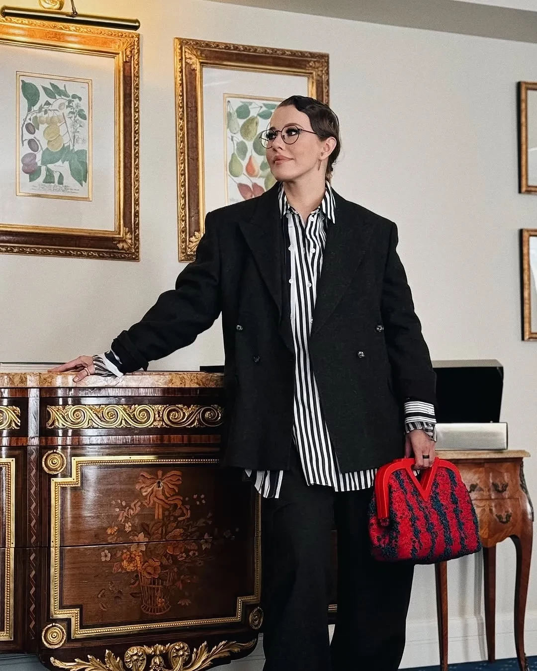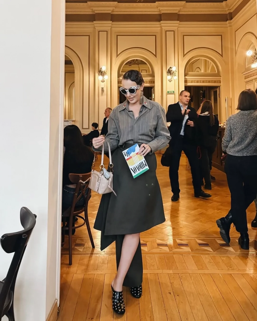 Супруги заселились в "Гранд Отель Мойка 22", посетили спектакль "Холопы" в театре БДТ, билеты на который раскуплены на месяцы вперёд, оценили новый местный ресторан и сходили в бар. Ксения гуляла по городу в леопардовом шарфе Nо. 21, кроссовках Adidas и с сумкой Hermes Birkin, а в театр надела асимметричную юбку с серой рубашкой.