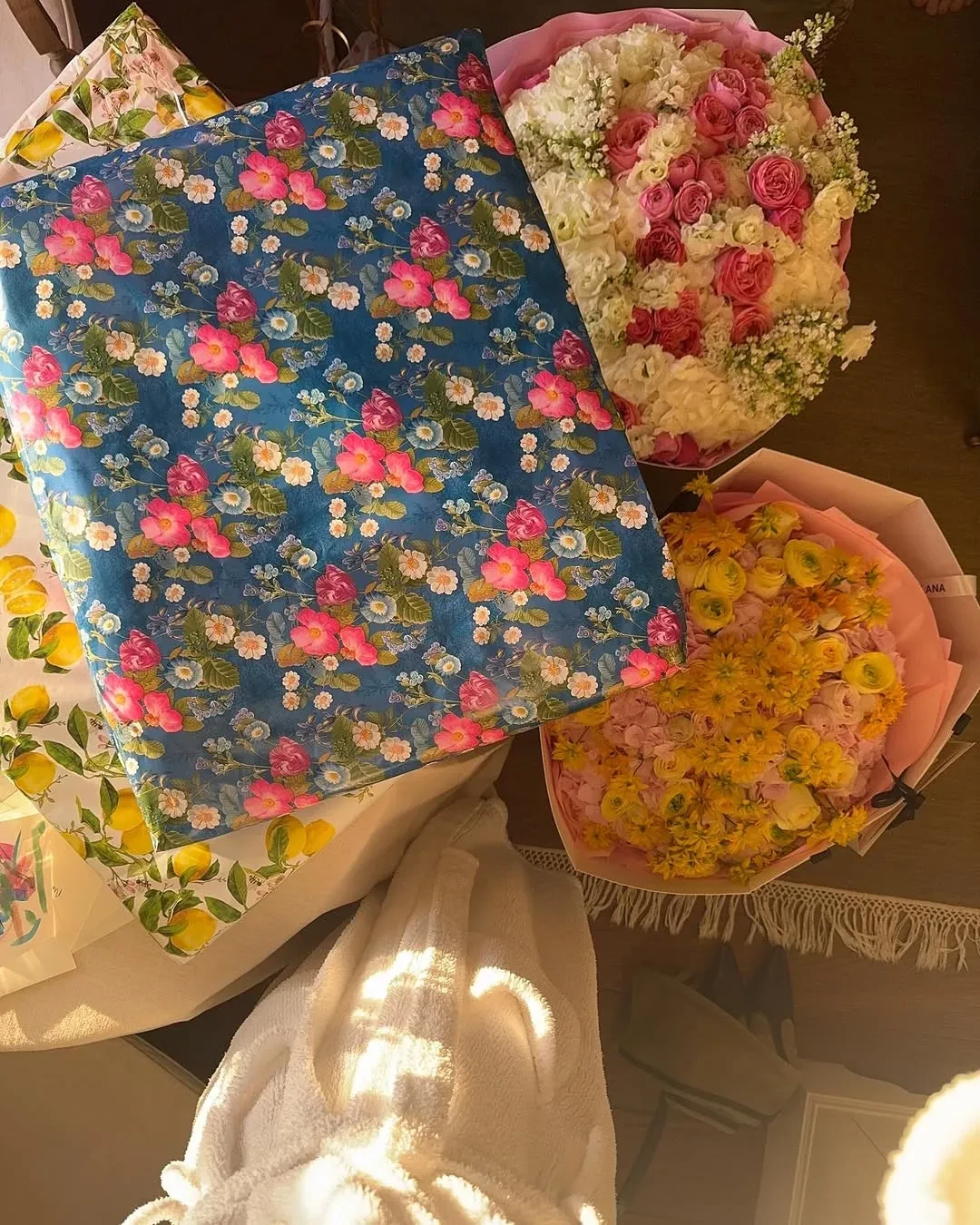 На фото Саша задувает свечи на праздничном торте вместе с мужем и трёхлетней дочерью, позирует в birthday-образе: бежевой юбке, рубашке в тон и с сумкой Chanel и отмечает дату на пикнике с друзьями. Блогерша также показала подарки от близких и букеты цветов с воздушными шарами.