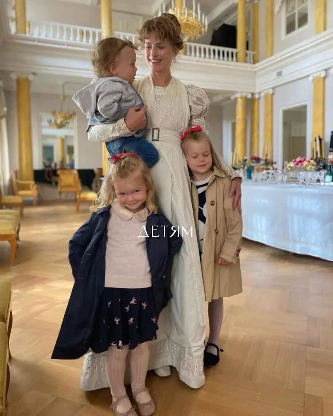 "Спасибо маме с папочкой, что меня родили. Мужу, детям, семье, друзьям, театру, работе, Донскому монастырю, русским просторам, пиву, Петербургу, жизни", — написала Эрнст, опубликовав фото с двумя дочерьми, которым сейчас семь и восемь лет, и четырёхлетним сыном на руках.