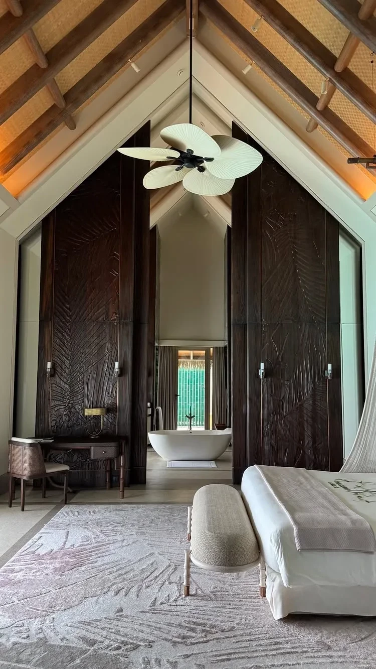 Помимо вида из иллюминатора и интерьера бунгало, манекенщик добавил видео, на котором Перминова запечатлена с букетом цветов и кокосом, а также совместный снимок. К последнему он добавил подпись: "Воссоединился с тобой", сопроводив её эмодзи в виде сердца.