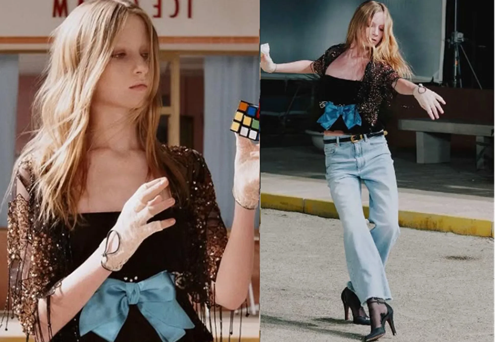 Младший сын Наоми Уоттс, который недавно дебютировал на подиуме Valentino, снялся в рекламной кампании бренда. Для съёмки 16-летний Кай надел чёрный топ с баской, прозрачными рукавами и синим бантом на талии, светлые джинсы, прозрачные перчатки и чёрные туфли на каблуках. В своём инстаграме* он также опубликовал кадры с бэкстейджа, на одном из которых позирует с креативным директором бренда Алессандро Микеле.