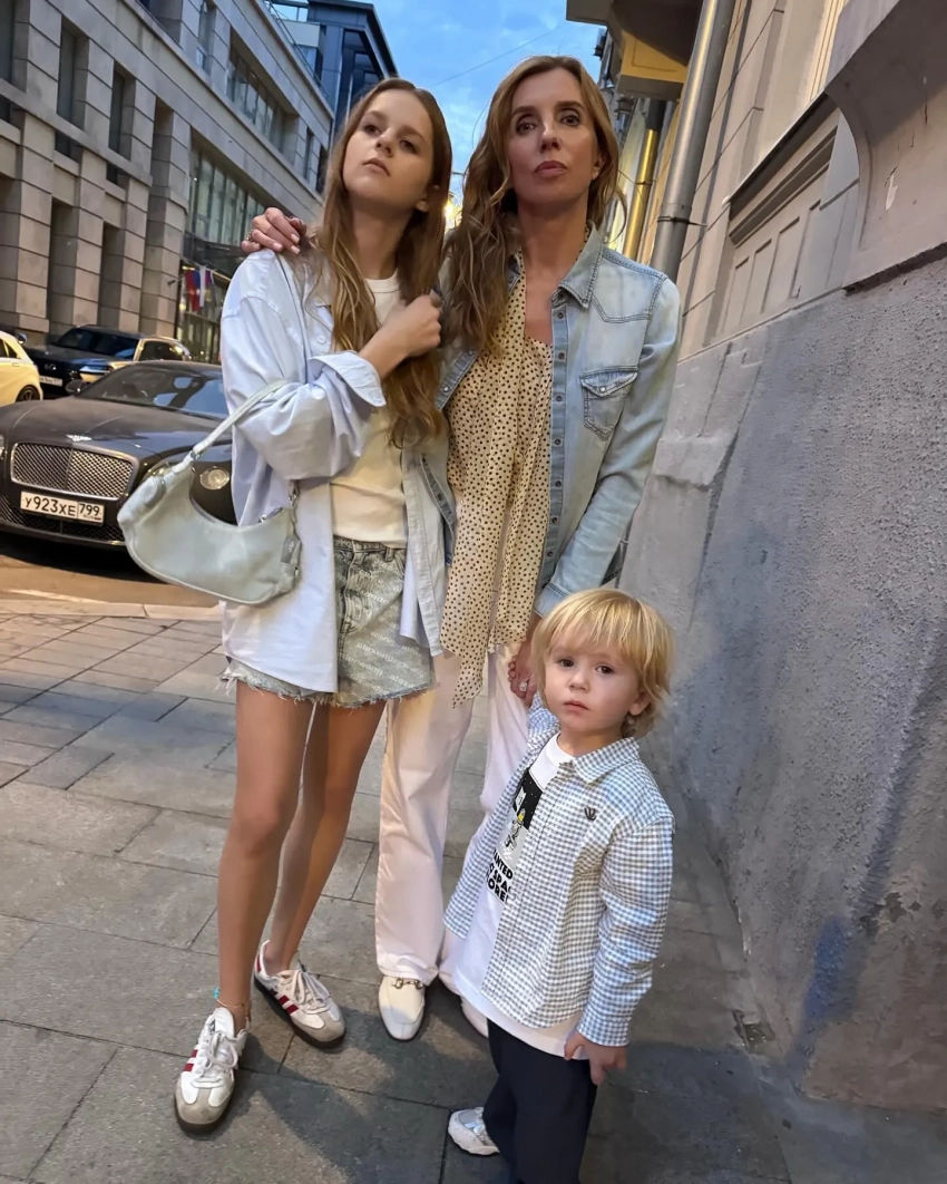 На фотографиях она вместе с 51-летним мужем Сергеем Харченко, их сыном Петром и дочерью Сергея от предыдущих отношений Юнной проводят время в Москве. Среди кадров также есть отдельное фото двухлетнего мальчика, который сидит за столиком в ресторане в ожидании блюда. "Вчера вечером два простуженных человека и два не простуженных гуляли по любимой вечерней Москве! Петя абсолютно мой сын! Сначала выпил коктейль, а потом съел пасту. Остался очень доволен", — с юмором подписала светская львица публикацию.