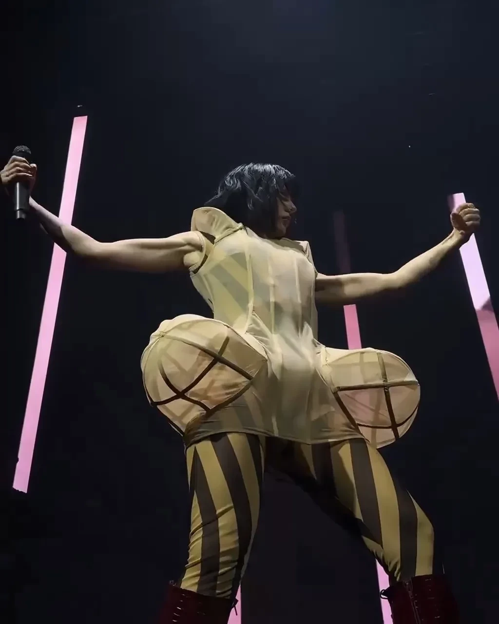 Скандал разгорелся после того, как поклонники начали выкладывать видеоролики с концерта. 37-летняя певица появилась на нём в полупрозрачном платье бренда ako.sixth странной конструкции. Наряд у многих вызвал непристойные ассоциации, из-за этого певицу начали массово критиковать: "Пора отменять, как Глюкозу", "Костюм убожество, кто её в это одел?", "Зачем на это ходят, ещё и с детьми". Сама она пока никак не отреагировала на критику.