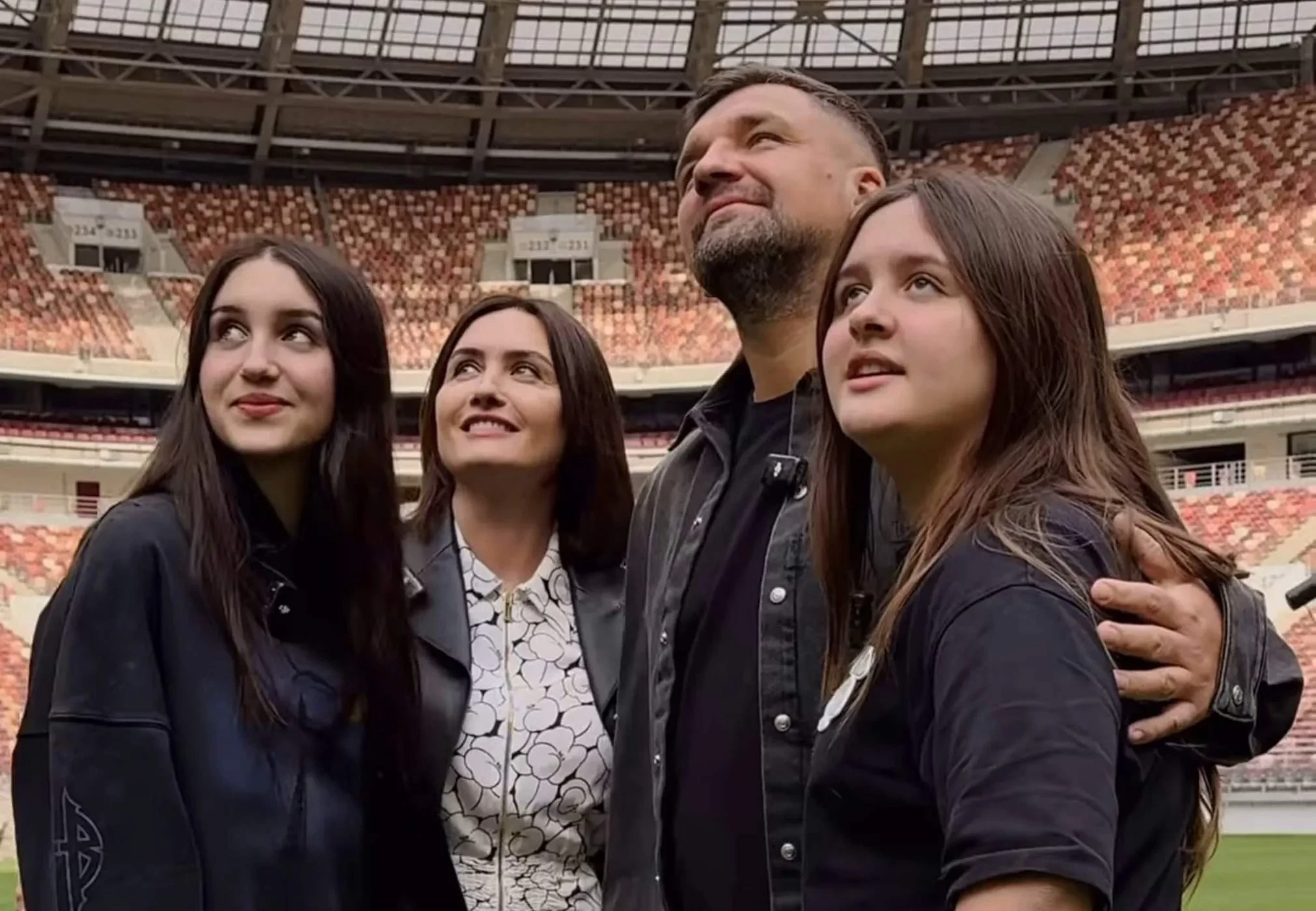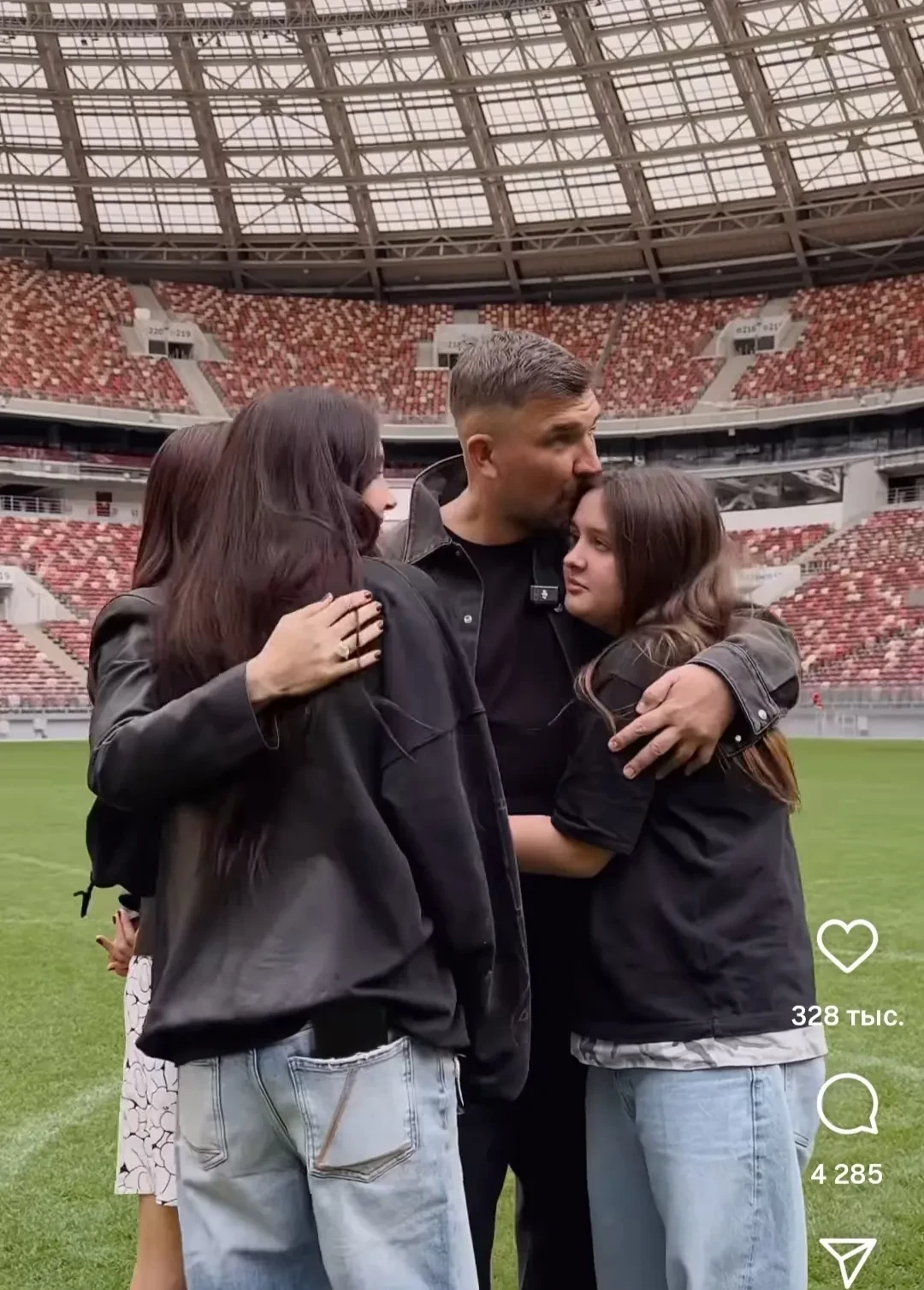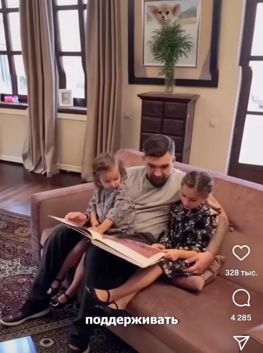 Баста с женойНачало ролика пара смотрела вдвоем, однако ближе к его концу к родителям подбежали их дочери Мария и Василиса. Судя по выражению лица Басты, сюрприз от семьи его растрогал.