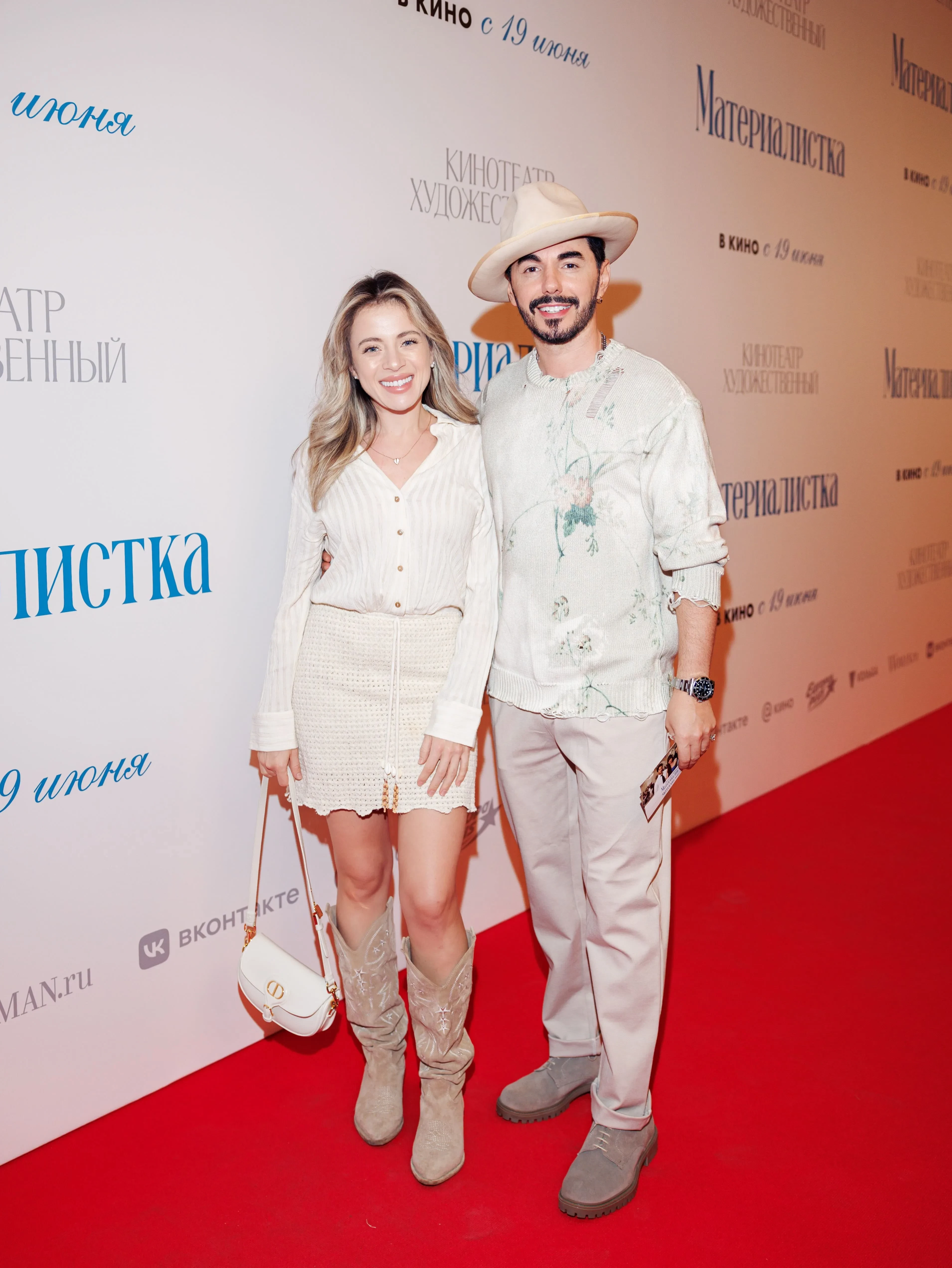 В московском кинотеатре "Художественный" состоялась премьера фильма "Материалистка". Гостями мероприятия стали Елизавета Арзамасова и Илья Авербух, которые вышли в свет на фоне недавнего скандала, Кристина Асмус и Ирина Хакамада, а также Тимур Родригез с Катей Кабак, роман которых обсуждают после развода шоумена.