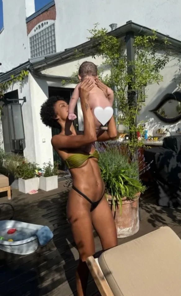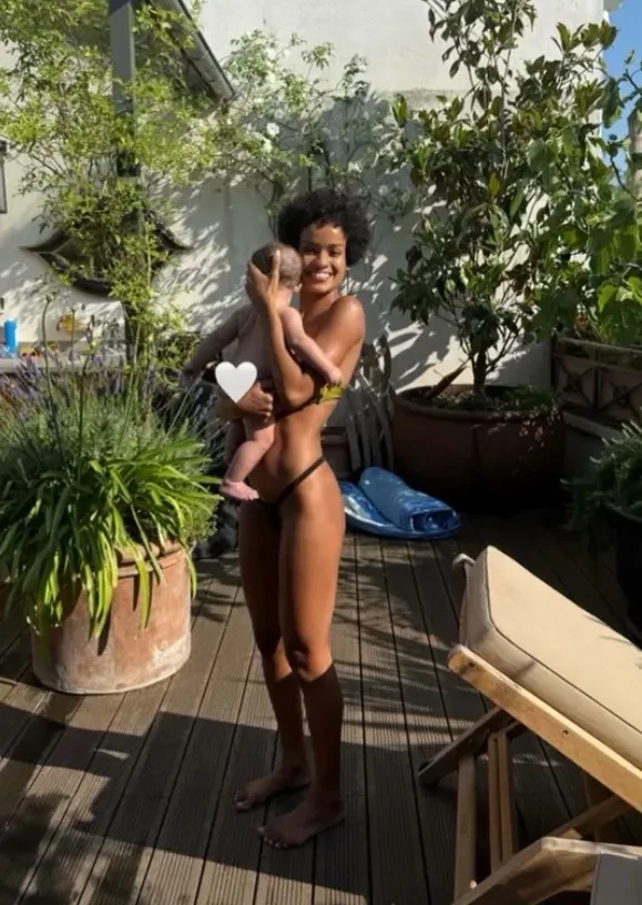 Девушка Венсана Касселя Нара Баптиста позирует в бикини с сыном на руках
