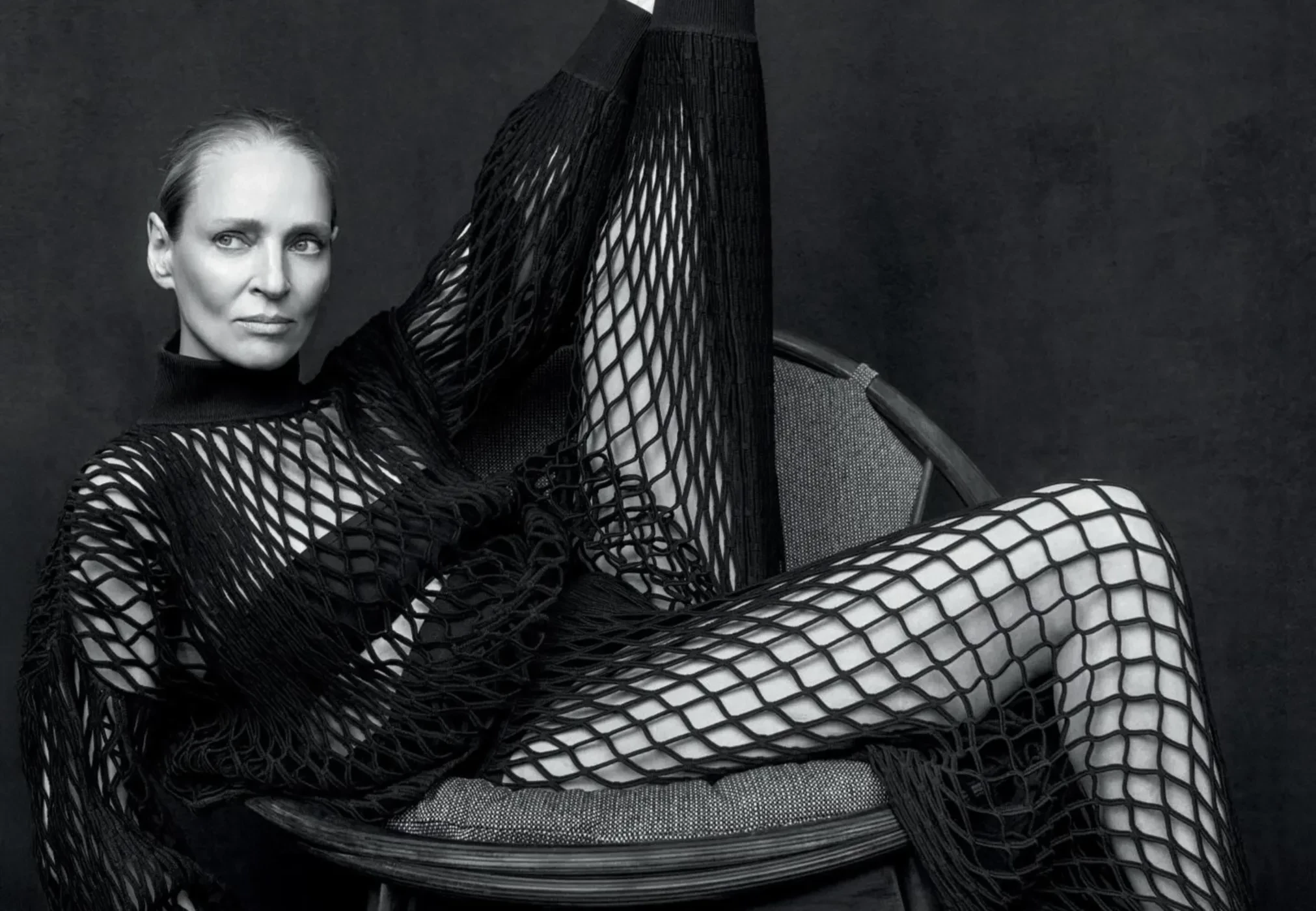 55-летняя Ума Турман снялась для глянца в комбинезоне-сетке