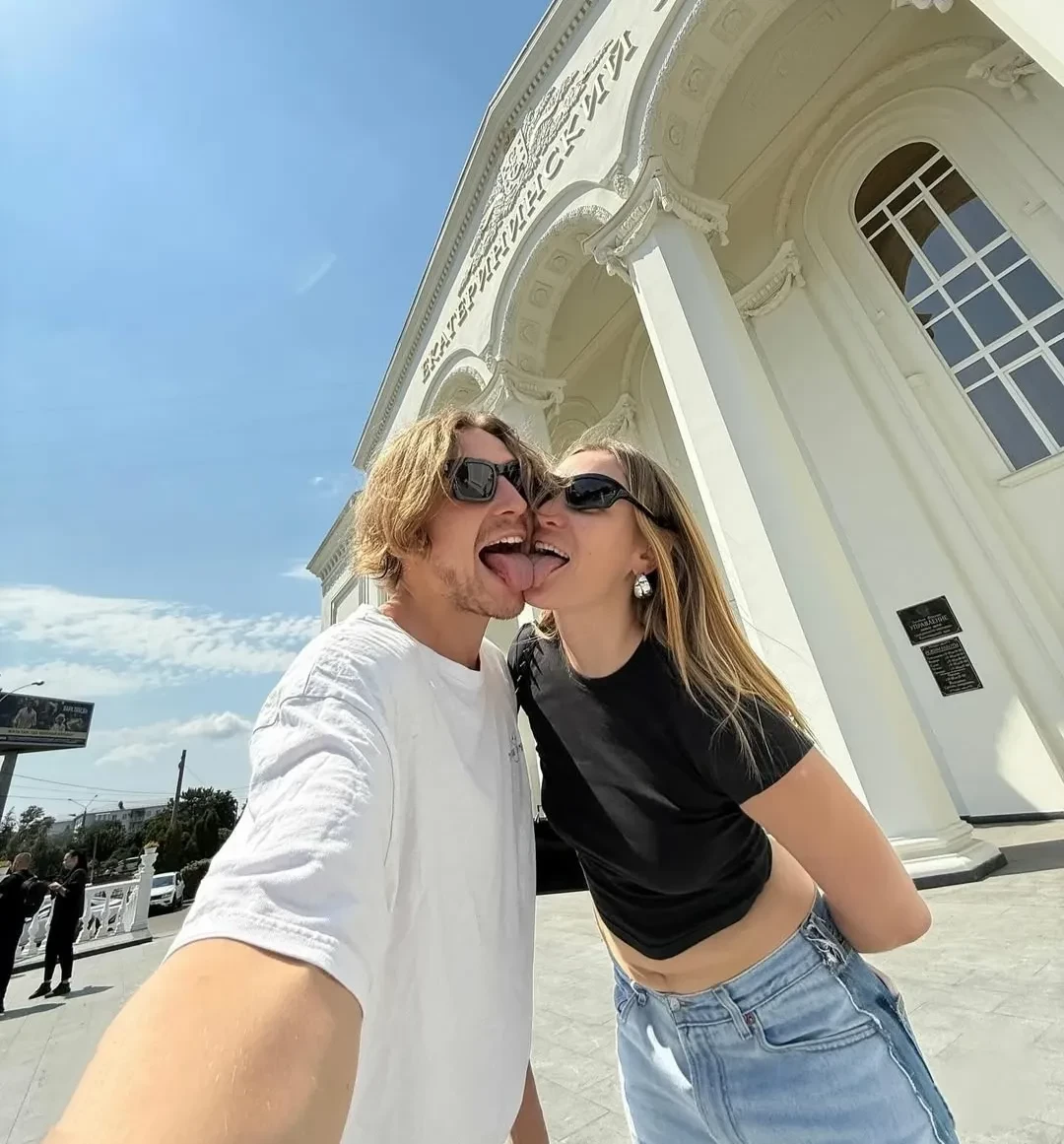 Актёр и блогерша опубликовали снимки, сделанные возле Дворца бракосочетания “Еватерининский зал” и подписали их так: “Невероятный фотоотчёт, как мы сходили в ЗАГС. Будем жениться, получается”.