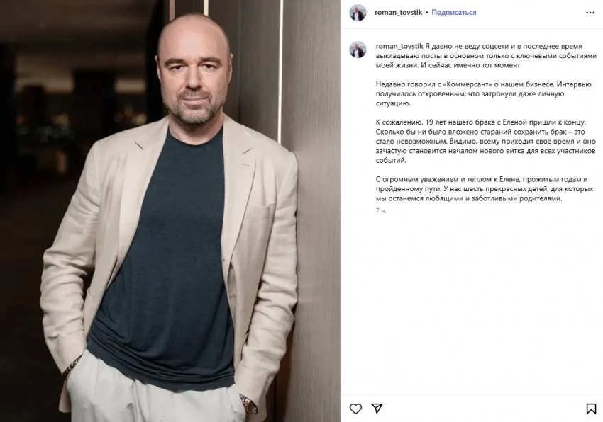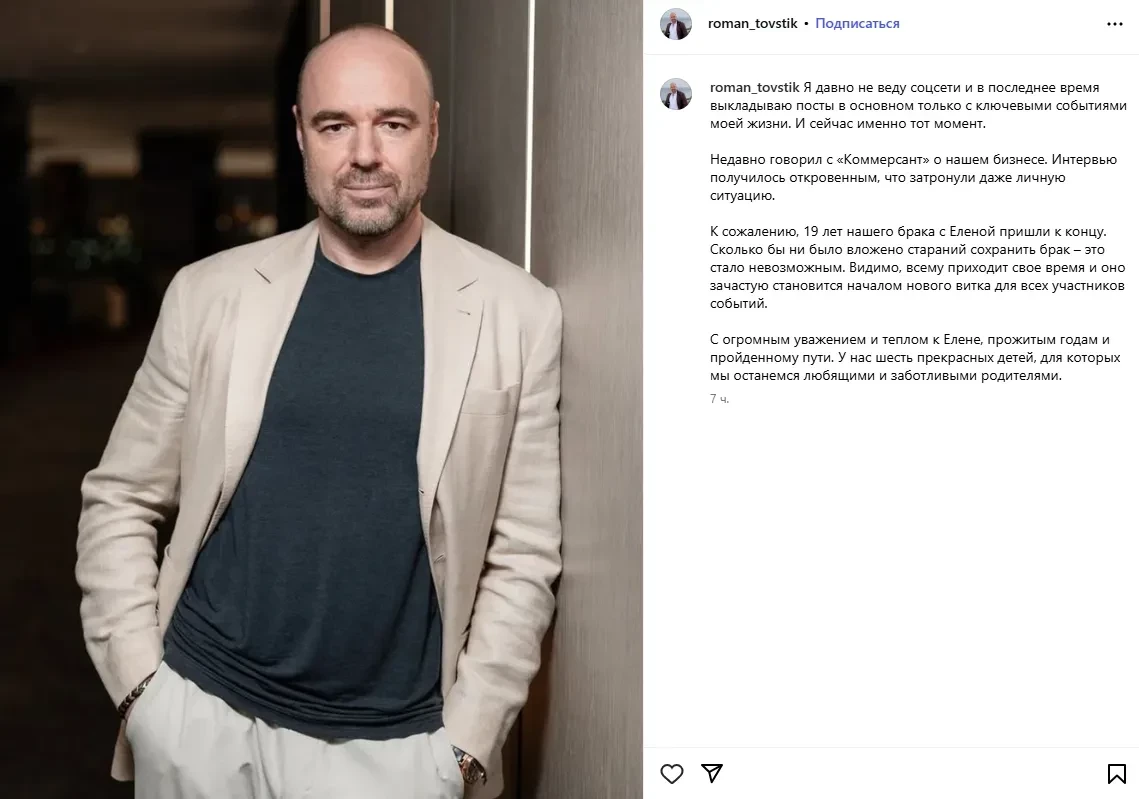 Пост Романа ТовстикОднако ответ Елены оказался гораздо более эмоциональным. В соцсетях она открыто обвинила мужа в предательстве, подтвердив, что он ушёл к подруге семьи, и заявила, что своим поступком он "убил" как её, так и их шестерых детей. "Светлая память Елене Товстик! К сожалению, Роману придётся забрать тело своей жены из Италии. Разрушив семью, убив мать и 6 детей... Это невозможно пережить… 22 года счастливого брака, нож в спину, последнему малышу — 1 год…" — написала Елена, сопроводив публикацию изображением горящей свечи.