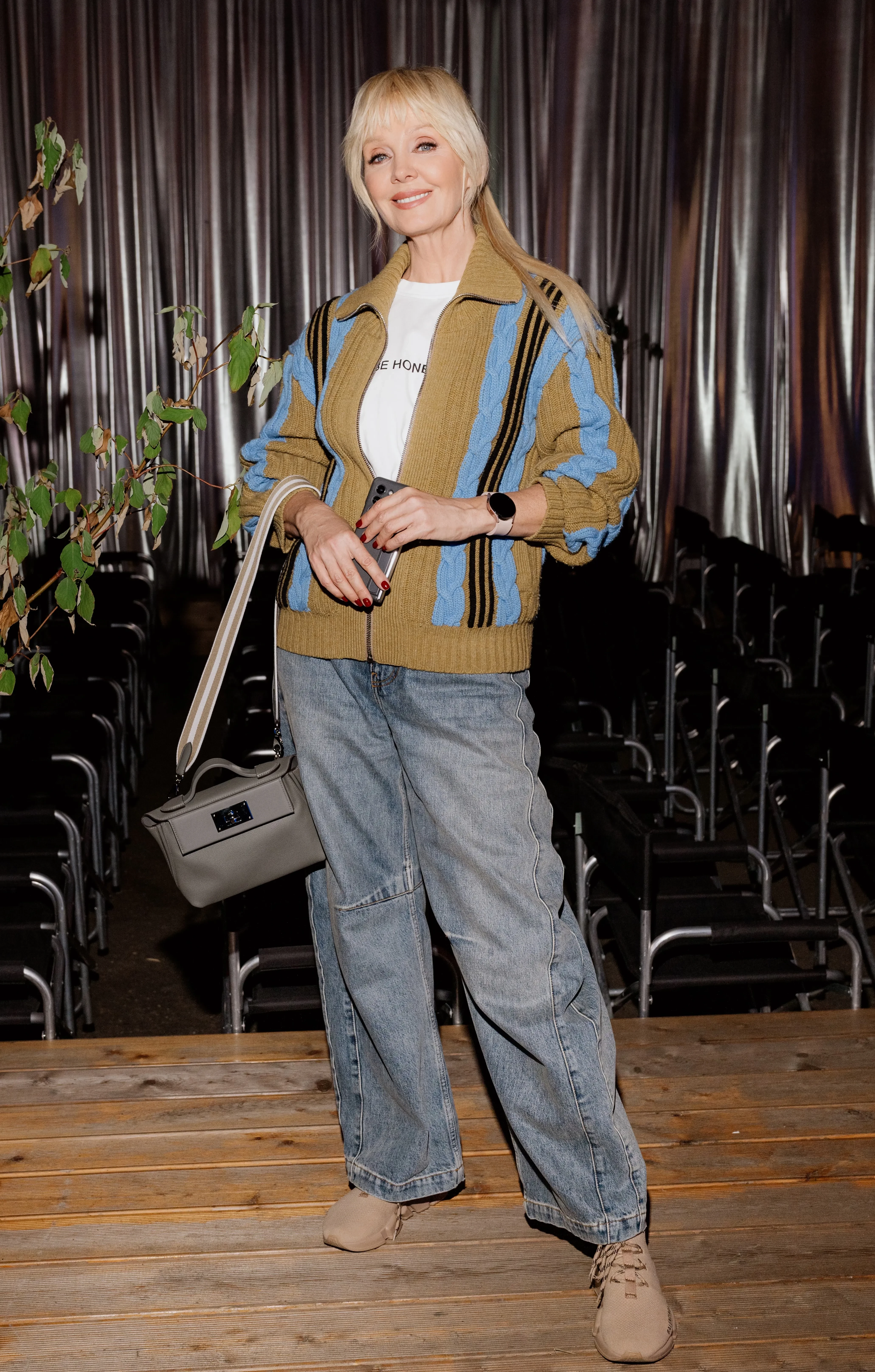 26-летняя Алеся Кафельникова приехала на презентацию сразу после мюзикла "Вальс-бостон" и рассказала в соцсетях, что переодеваться ей пришлось прямо в машине. Модель позировала в кожаном платье и обуви на высоких каблуках.