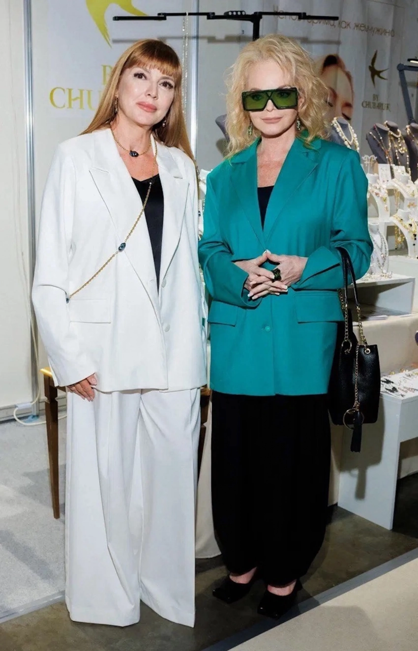 Олеся Судзиловская, Лариса Долина, Ирина Хакамада и Ирина Безрукова на модной выставке